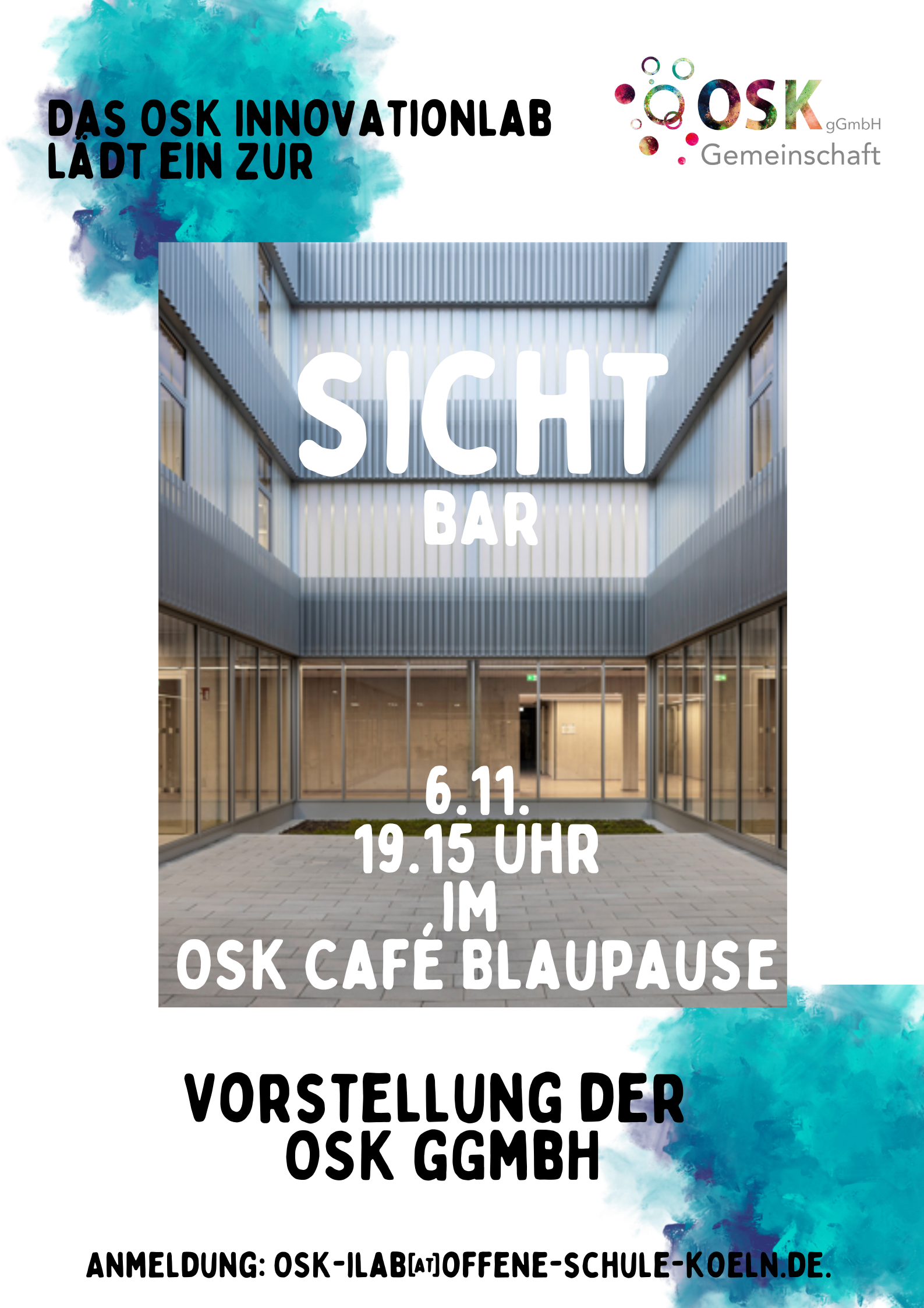 Das OSK innovationlab lädt alle interessierten Menschen zur SichtBAR ein. Diesmal steht die OSK gGmbH im Mittelpunkt. Das Motto des Abends: „Die Zukunft gehört den Mutigen“.