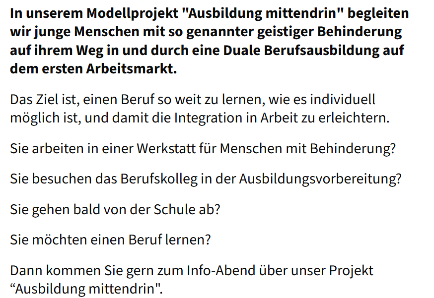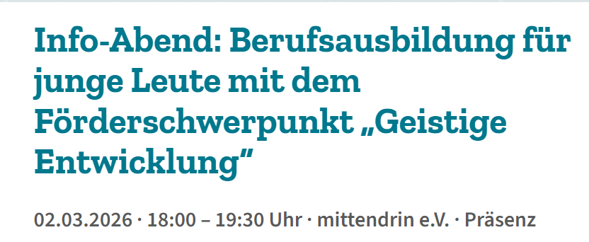 Info-Abend: Berufsausbildung für junge Leute mit dem Förderschwerpunkt „Geistige Entwicklung“
