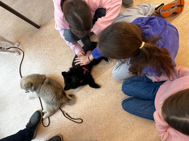 Die Kinder konnten viele Fragen stellen: Wie zieht man Welpen auf? Was brauchen sie im Alltag? Und natürlich gab es jede Menge Kuschelzeit – die Begeisterung war groß!